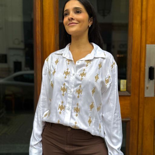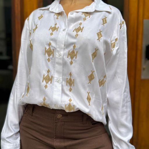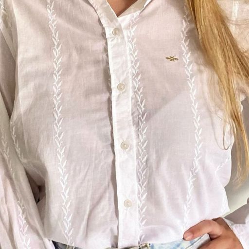 Camisa manga larga blanca bordada