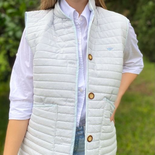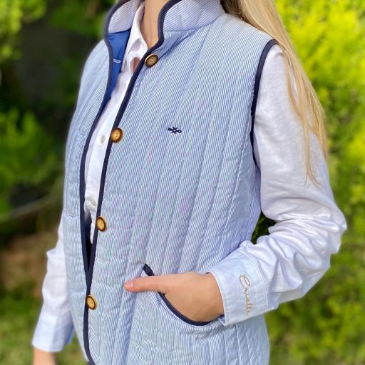 Chaleco matelassé rayas celeste y blanco