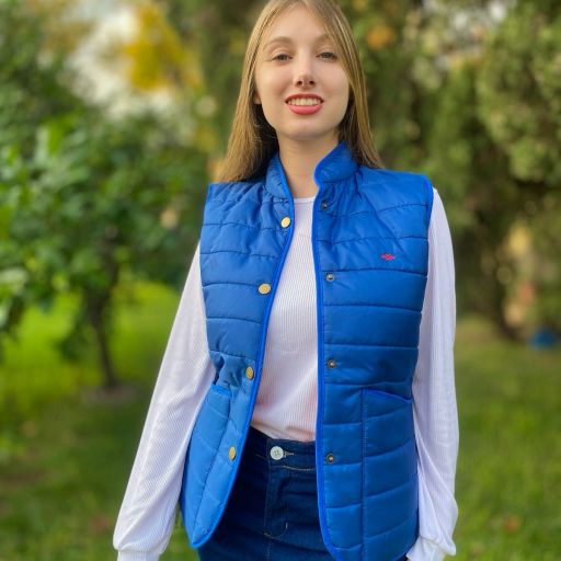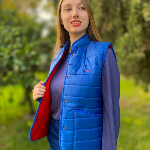 Chaleco matelassé azul y rojo