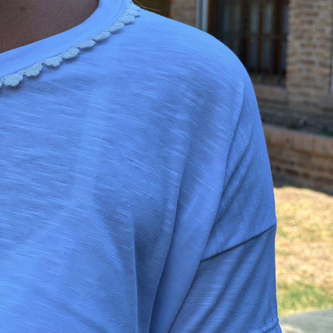 Confeccionada en algodón 100%, cuenta con delicados detalles en el cuello que realzan su diseño y la vuelven ideal para todos los días.