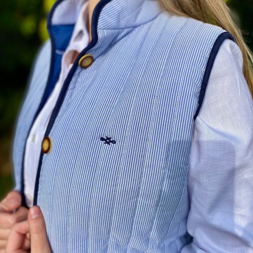 Chaleco matelassé rayas celeste y blanco